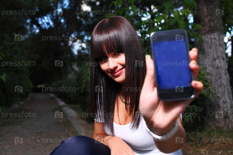 Улыбающаяся девушка показывает телефон