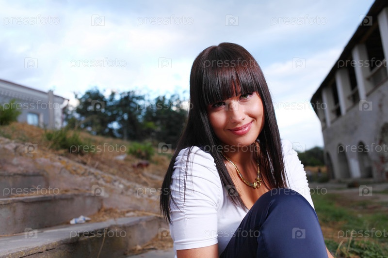 Улыбающаяся брюнетка на открытом воздухе
