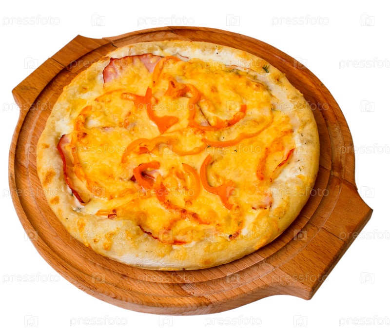 Аппетитная пица на деревянном поддоне, изолированный фон