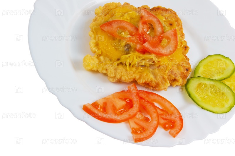 Стейк, огурец, сыр, изолированные на белом фоне