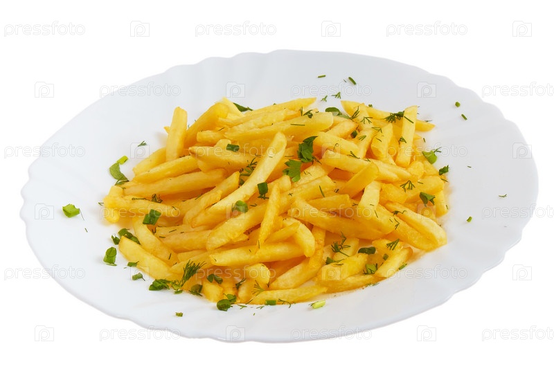 Вкусный картофель фри, укроп, изолированные на белом фоне