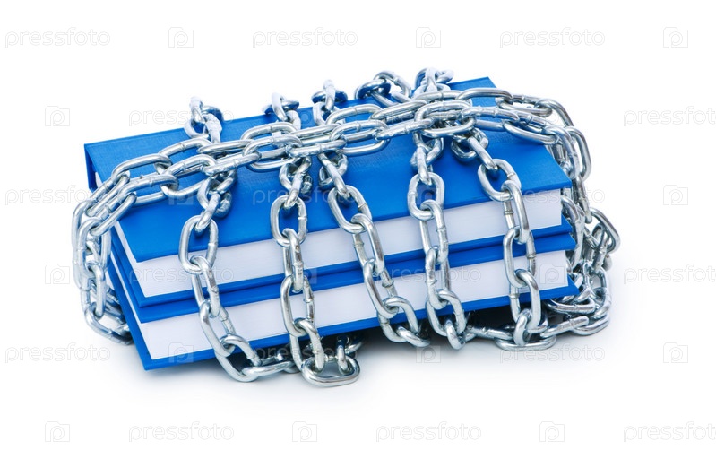 Книги закованные в цепи, изолированные на белом фоне (концепция цензуры)