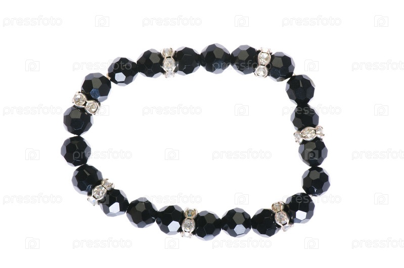 Браслет из черных камней на белом фоне
