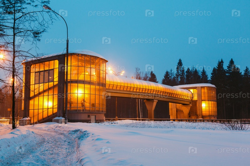 Воздушный пешеходный переход зимой