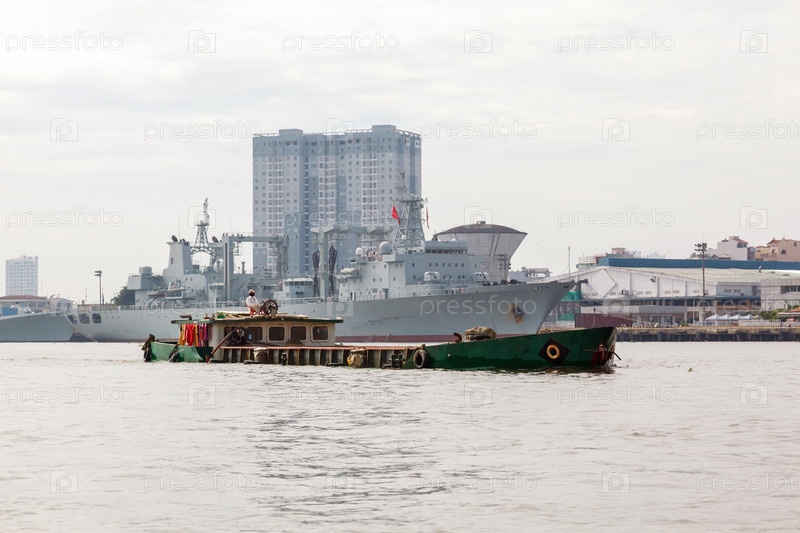 Перегруженная баржа на реке во Вьетнаме