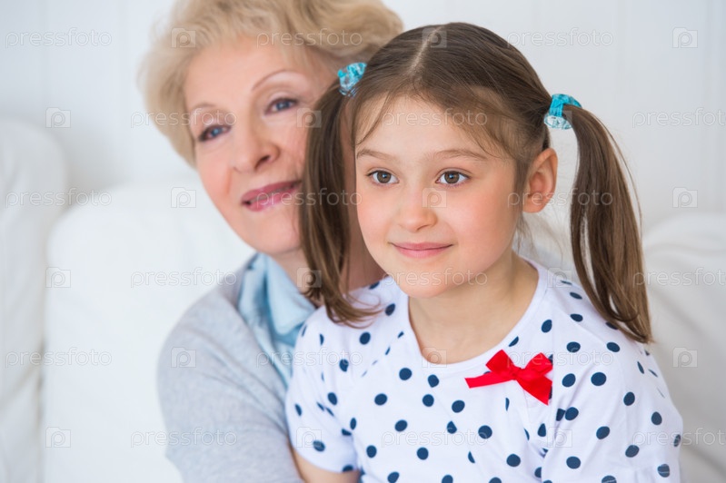 Прекрасная маленькая девочка с бабушкой, счастливые моменты вместе