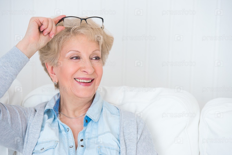 Пожилая женщина с белыми волосами у себя дома