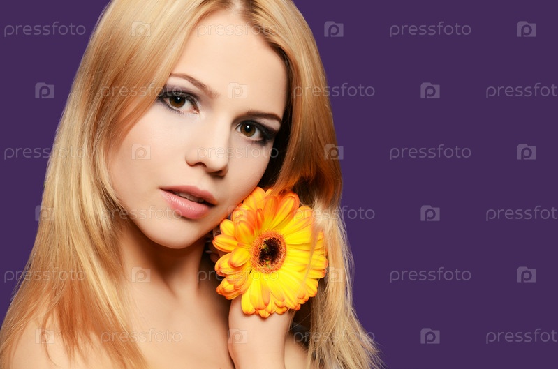 Красивая женщина с герберой