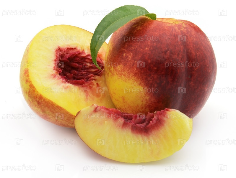 Свежий персик с листьями