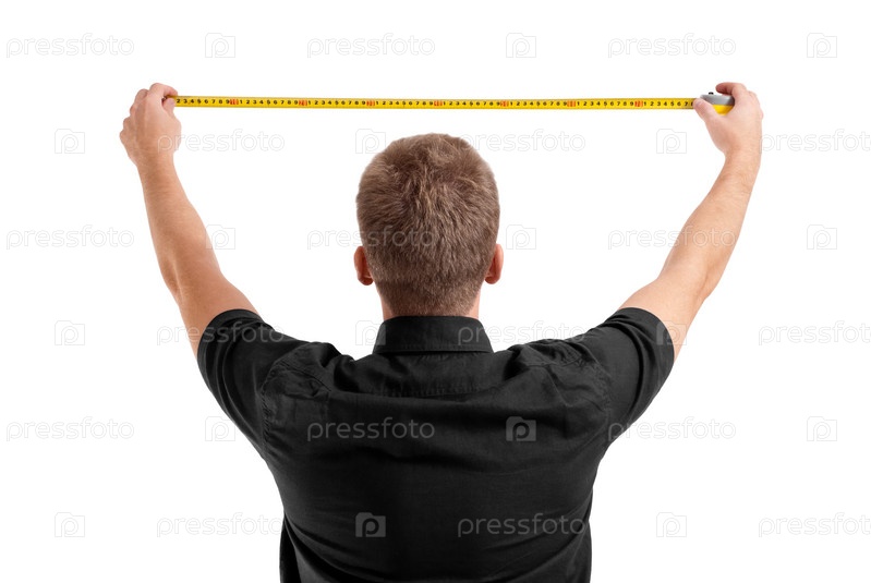 Мужчина, стоящий спиной, держит рулетку над головой
