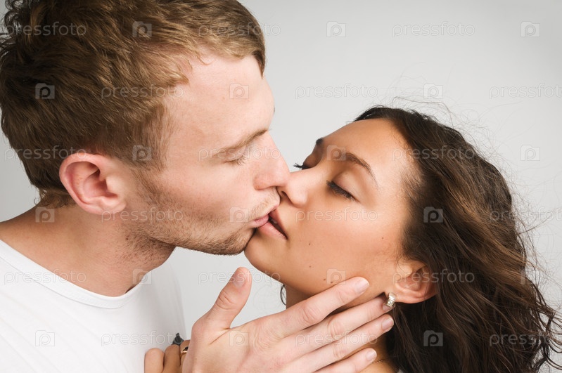 Молодые мужчина и женщина целуются
