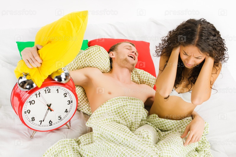 Молодая пара раздражается звонком будильника