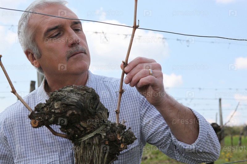 Мужчина работает на винограднике