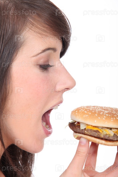 Девушка-подросток ест гамбургер