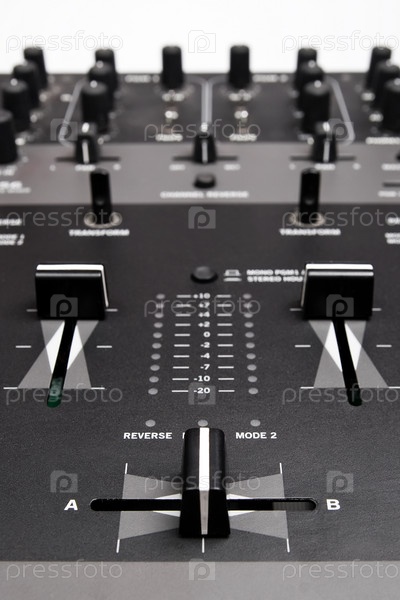 Панель со звуковыми микшерами на белом фоне