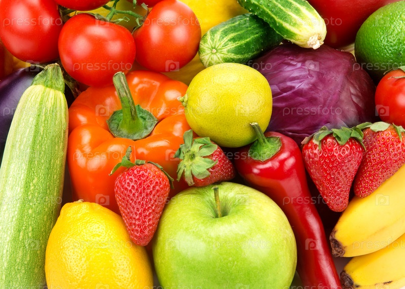 Яркий фон из различных фруктов и овощей