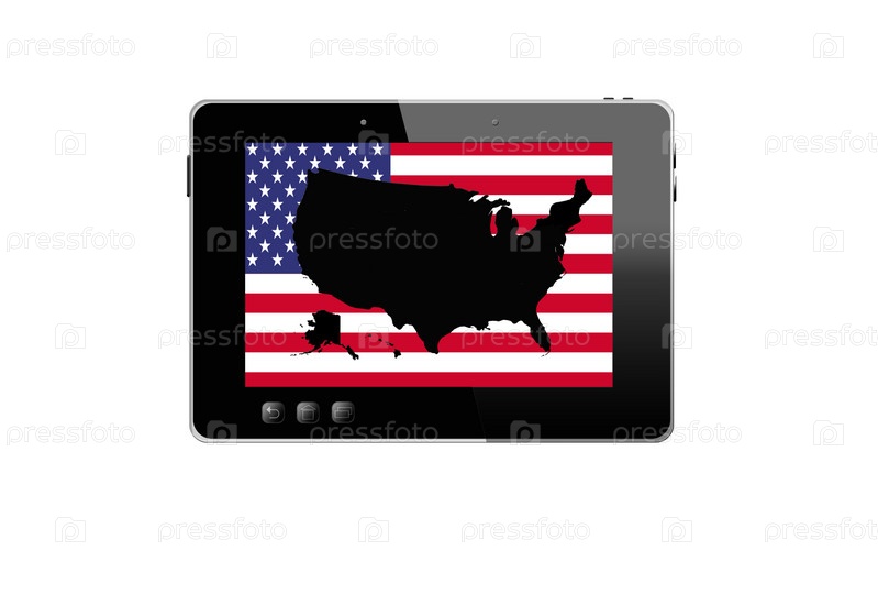 Черных планшетный компьютер и черная карта США