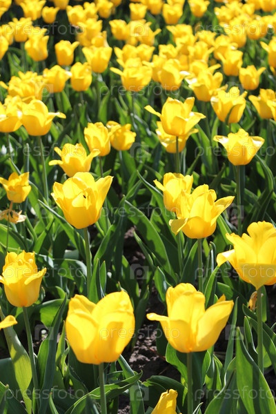 Желтые тюльпаны на клумбе