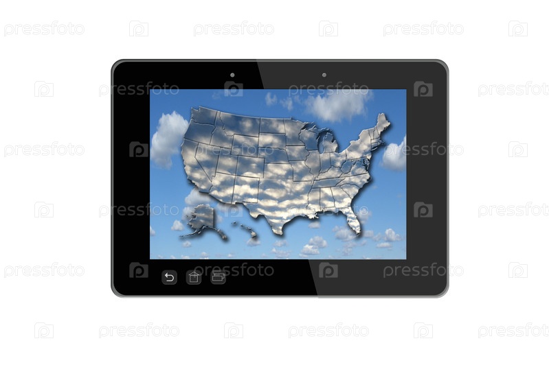 Черный планшет и красочная карта США