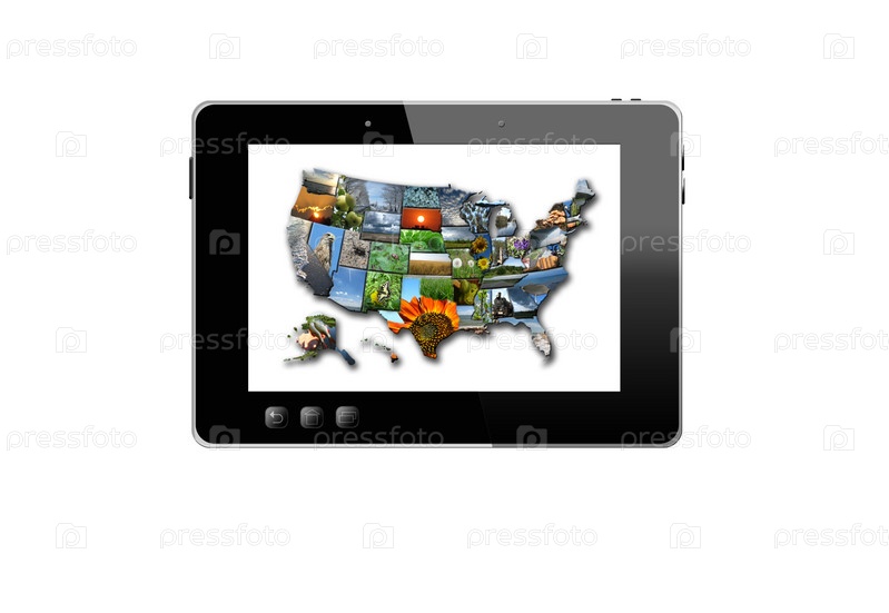 Черный планшет и красочная карта США