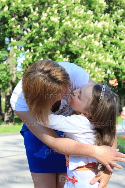 Мать целует дочь