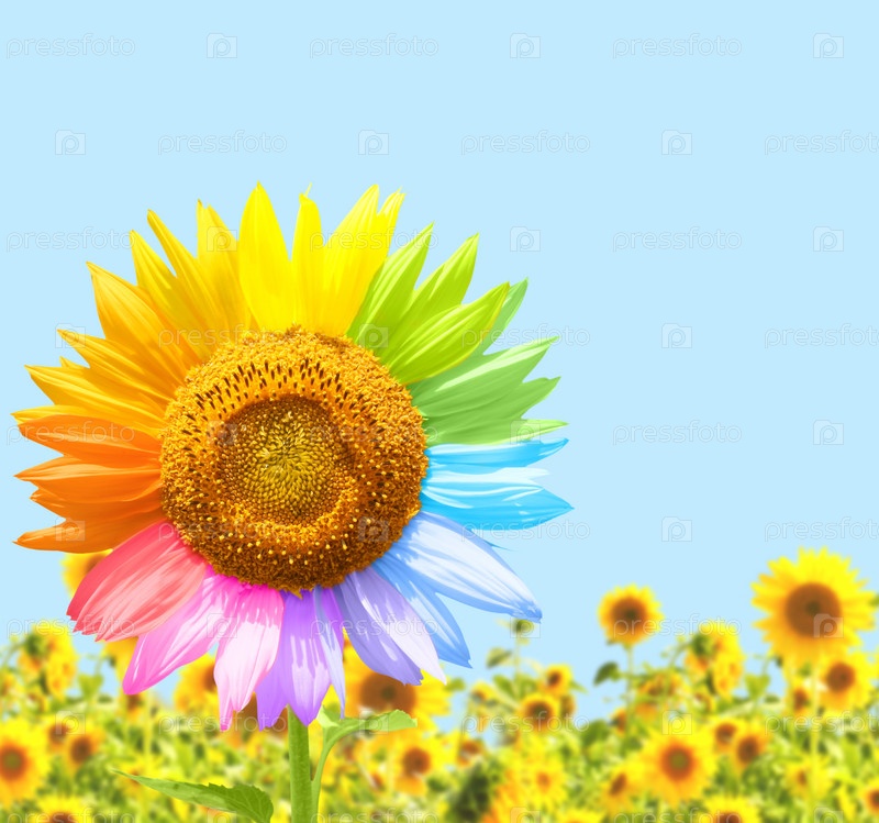 Подсолнечник, окрашенный в разные цвета