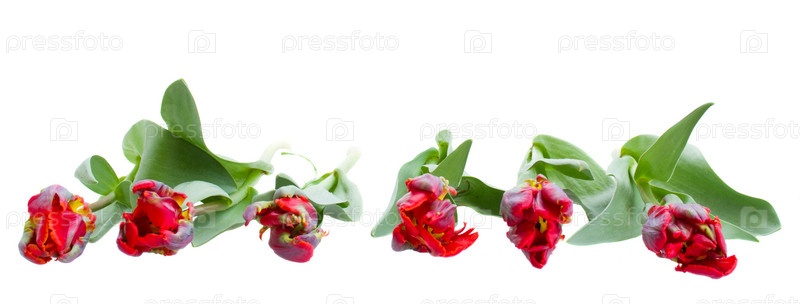 Граница из красных тюльпанов-попугаев