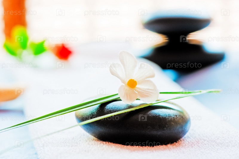 Натюрморт с черным камнем и цветкомв стиле дзен