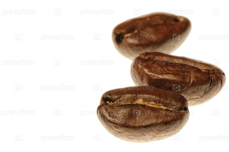 Три кофейных зерна на белом фоне