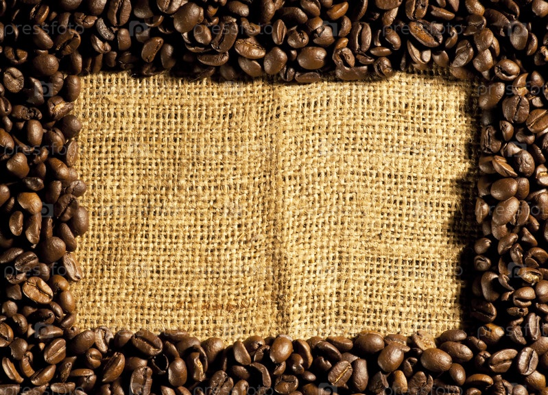 Рамка из кофейных зерен на мешковине