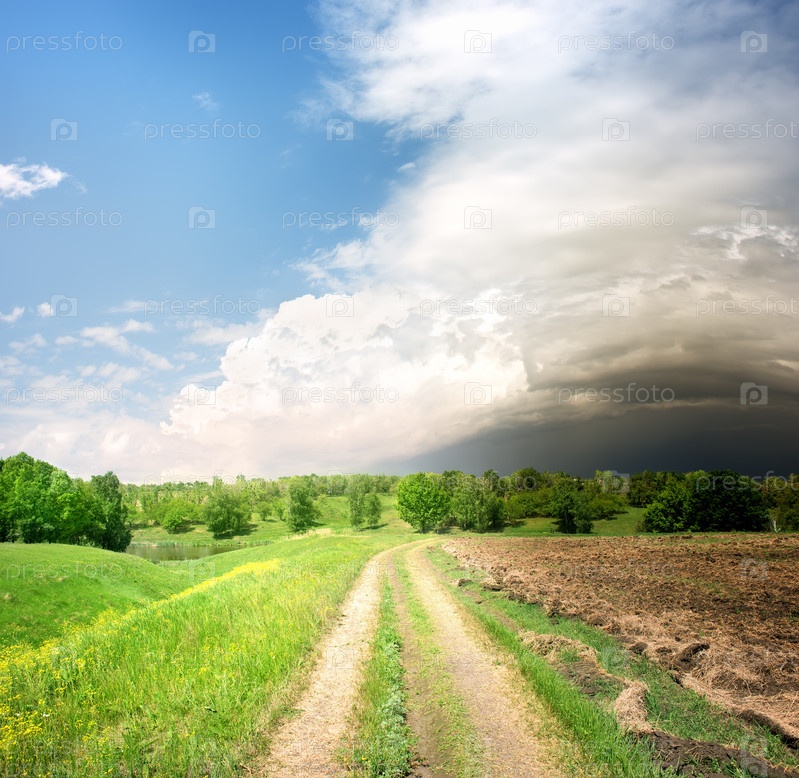 Проселочная дорога и тучи
