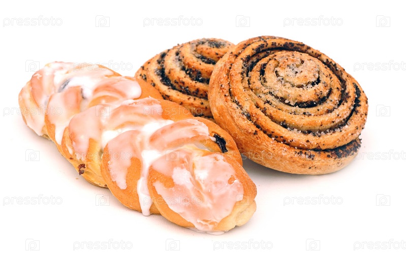 Сладкие булочки, изолированные на белом