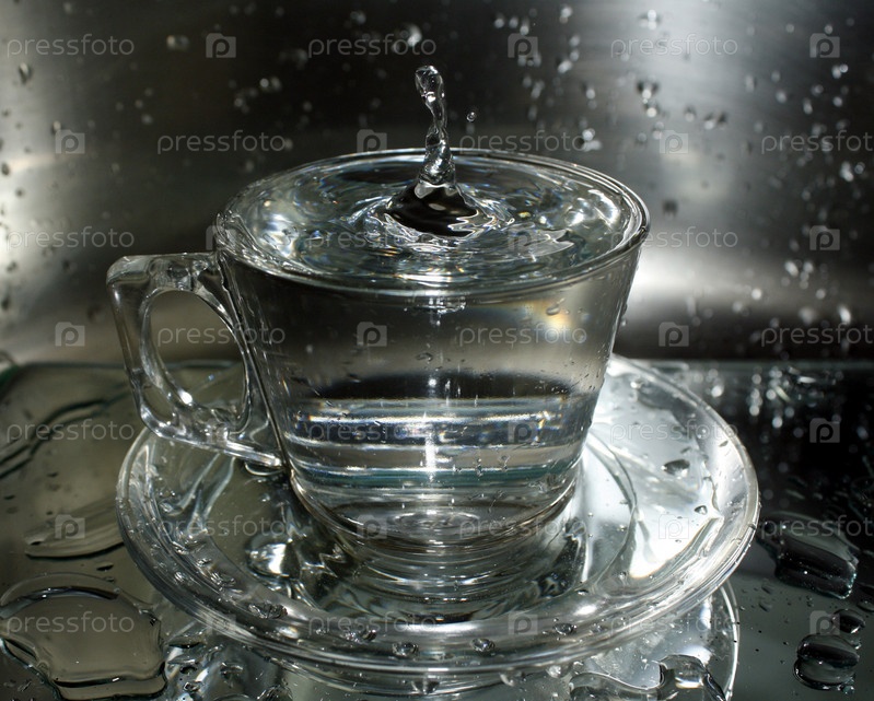 Вода, переливающаяся через края стеклянной кружки