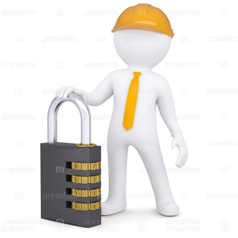 3D-человек в шлеме с кодовым замком
