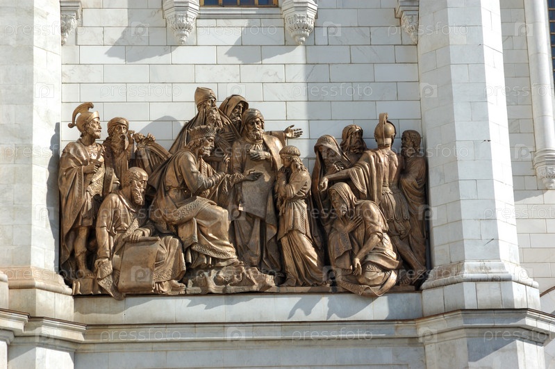 Бронзовый барельеф на стене Храма Христа Спасителя в Москве, Россия