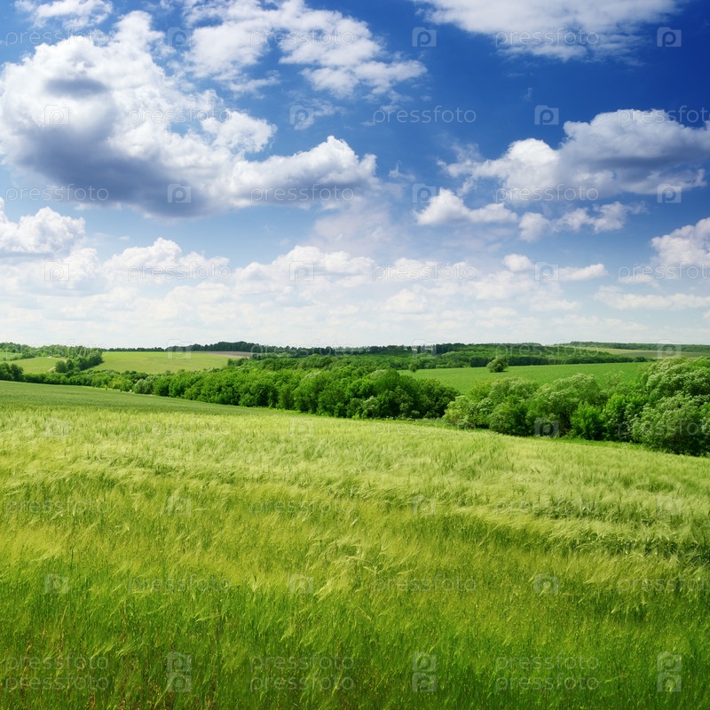 Зеленое поле и голубое небо
