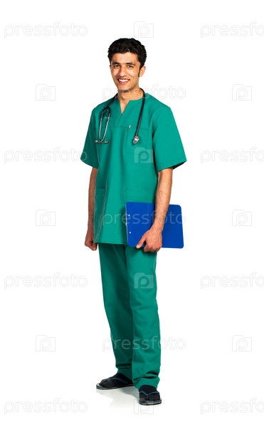 Портрет врача с картой на белом фоне