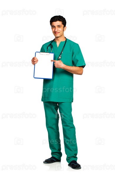 Портрет врача с картой на белом фоне