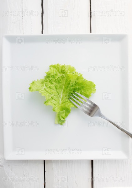 Салат с вилкой на тарелке