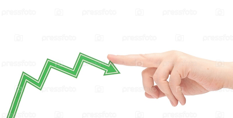 Рука держит стрелку графика на белом фоне