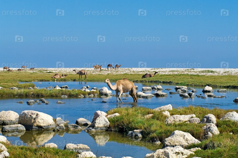 Верблюды на пляже, Оман, Ближний Восток