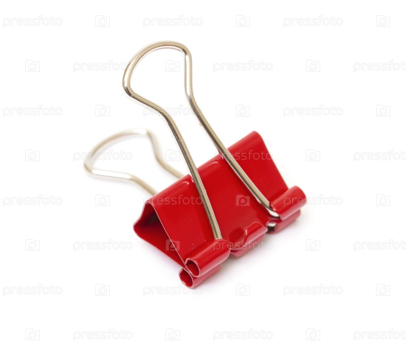 Красный зажим крупным планом на белом фоне