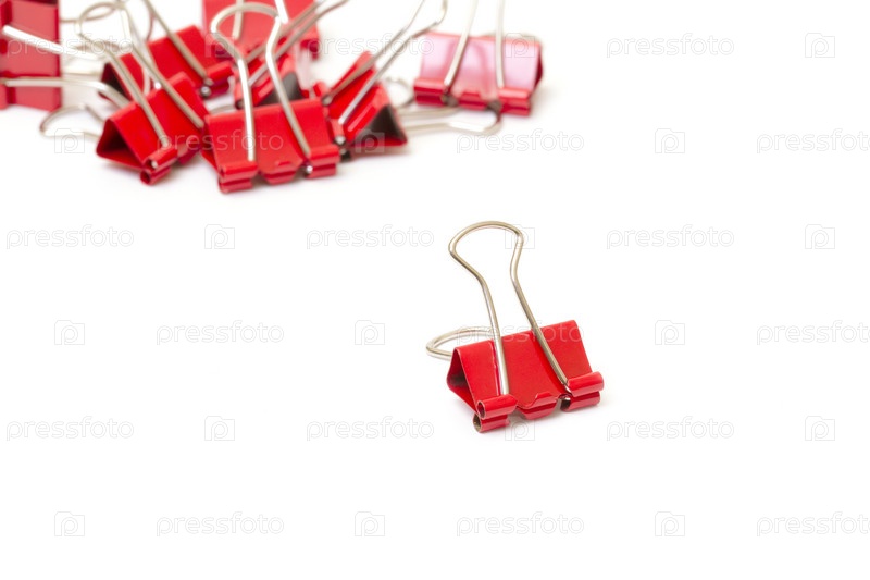Красные зажимы крупным планом на белом фоне