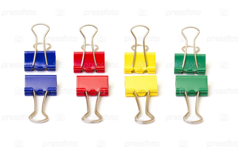 Зажимы крупным планом на белом фоне