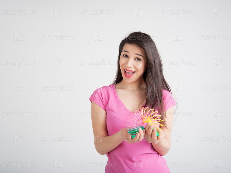 Женщина с игрушечной пружинкой