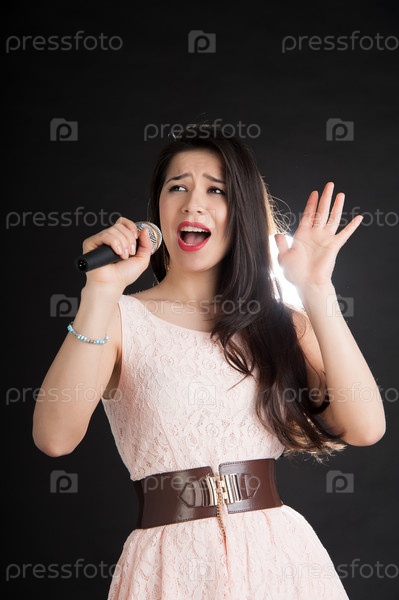 Красивая певица на черном фоне