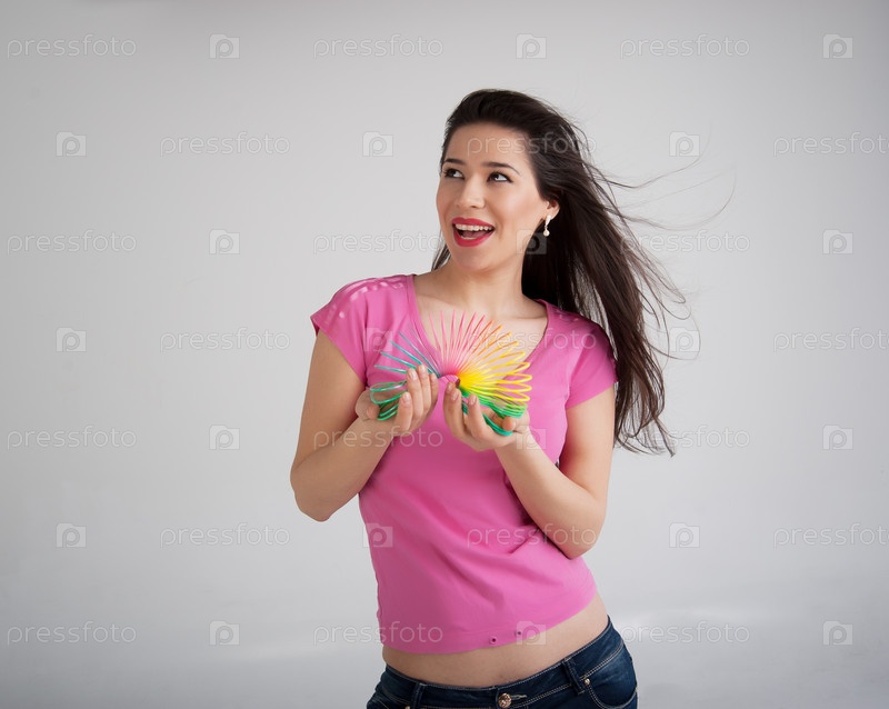 Женщина с игрушечной пружинкой