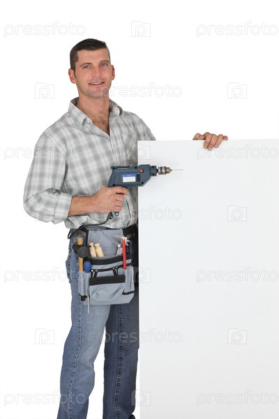 Рабочий с пустой доской и дрелью