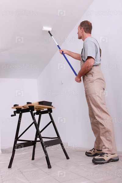 Мужчина красит потолок
