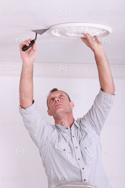 Мужчина монтирует потолочную розетку